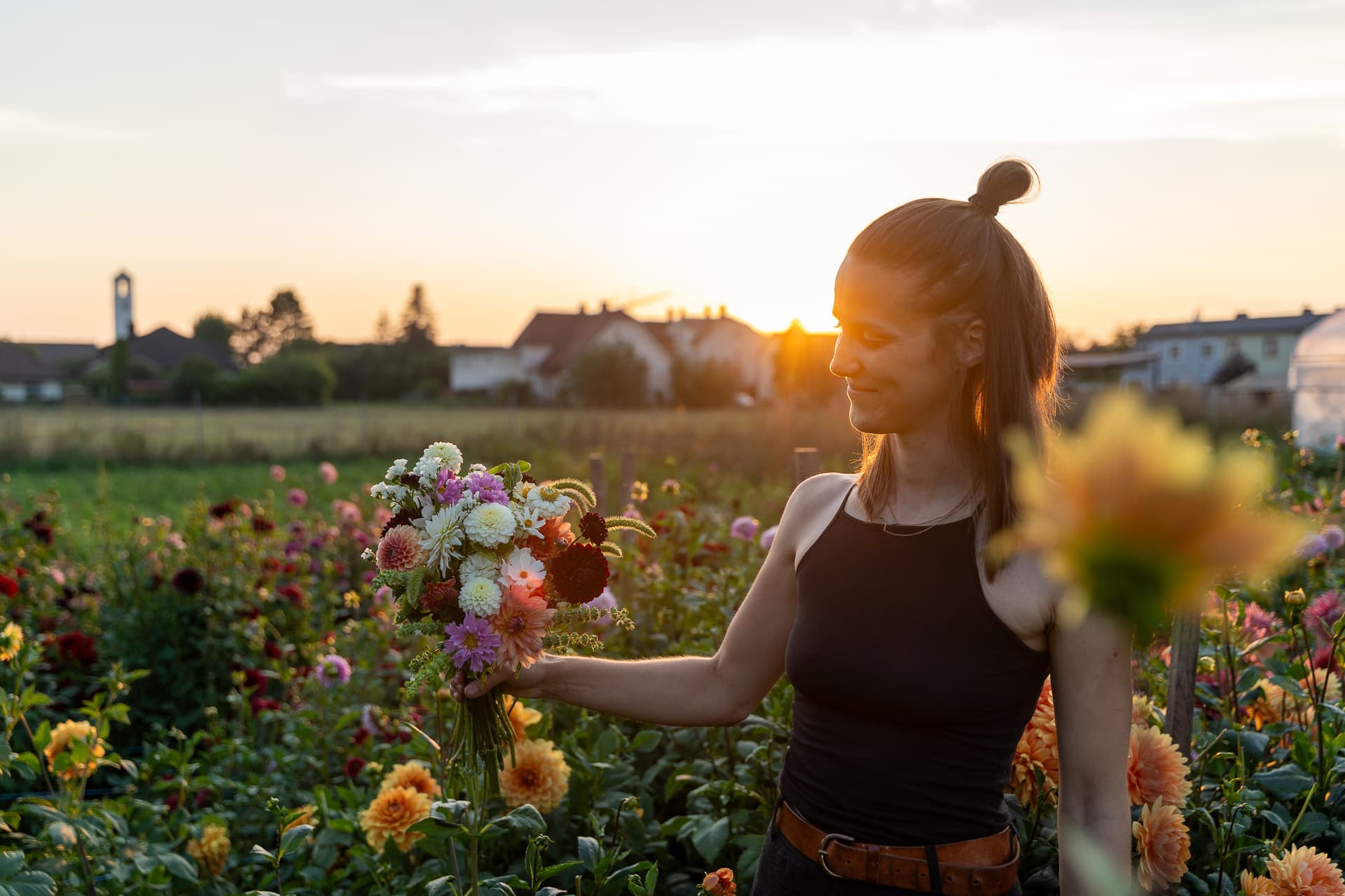 Mein Name ist Theresa, ich habe Blumiges 2023 gegründet und baue seither in St. Pölten-Wagram saisonale Schnittblumen auf unserem Blumenfeld an, natürlich und ohne konventionelle Pflanzenschutzmittel. Ich freue mich jedes Jahr aufs Neue zu sehen, wie aus kleinen Samen etwas Prächtiges wächst, das später in einer Vase auf dem Tisch steht, Farbe ins Leben bringt und Freude bereitet. Hier kannst du saisonale Blumenbünde bestellen, ein flexibles Blumenabo abschließen, Blumen für dein Fest oder deine Hochzeit zum Selbergestalten auswählen, Workshops am Feld buchen und im Frühling auch unseren Jungpflanzenmarkt entdecken, weil wir es lieben, unser eigenes Gemüse anzubauen und den Geschmack und die Begeisterung dafür gerne mit Dir teilen wollen.